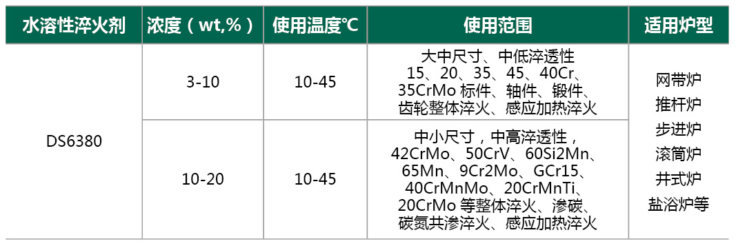 DS6380水溶性淬火液是一種基于聚烷撐二醇(PAG)等有機聚合物與功能助劑配制的水基淬火介質(zhì),具備逆溶性、不燃等特性,可通過調(diào)整濃度精準控制冷卻速度,適用于碳鋼、合金鋼、鑄鐵等材料的淬火工藝。